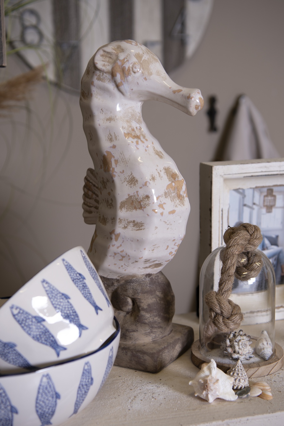 Dekorace ve tvaru mořského koníka je působivým a originálním prvkem, který připomíná podmořský svět. Mušle z vlastní dovolené umístěné ve skleněné dóze jsou nejen krásnou dekorací, ale také vzpomínkou na vaše plážové dobrodružství. Mořské motivy na porcelánu, jako jsou ryby, korály nebo mořské hvězdice už jsou jen třešničkou na dortu