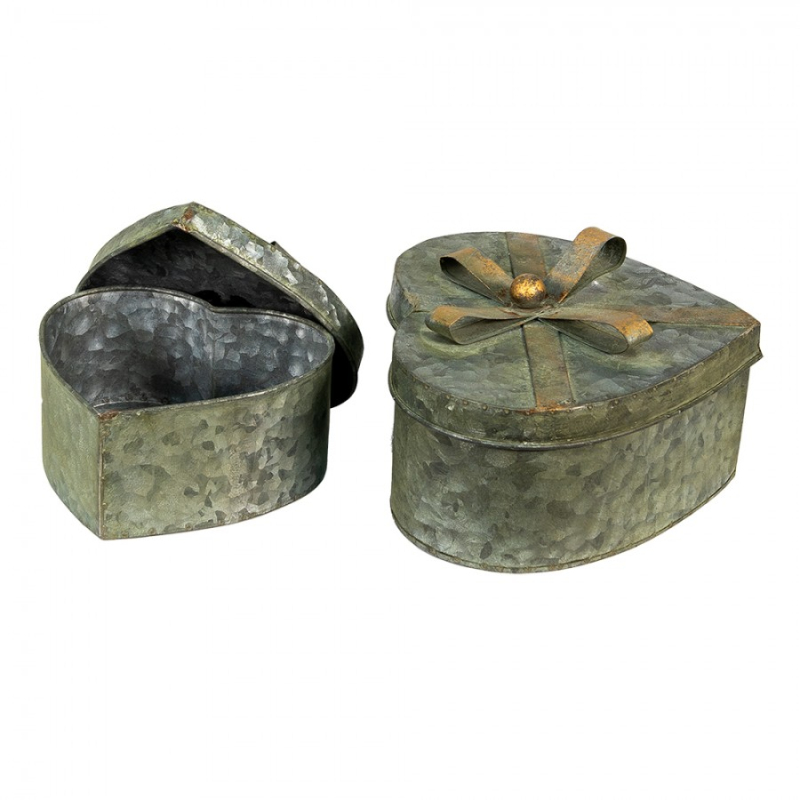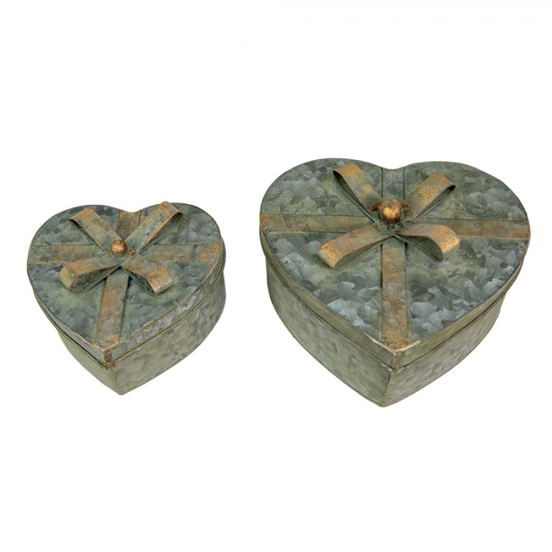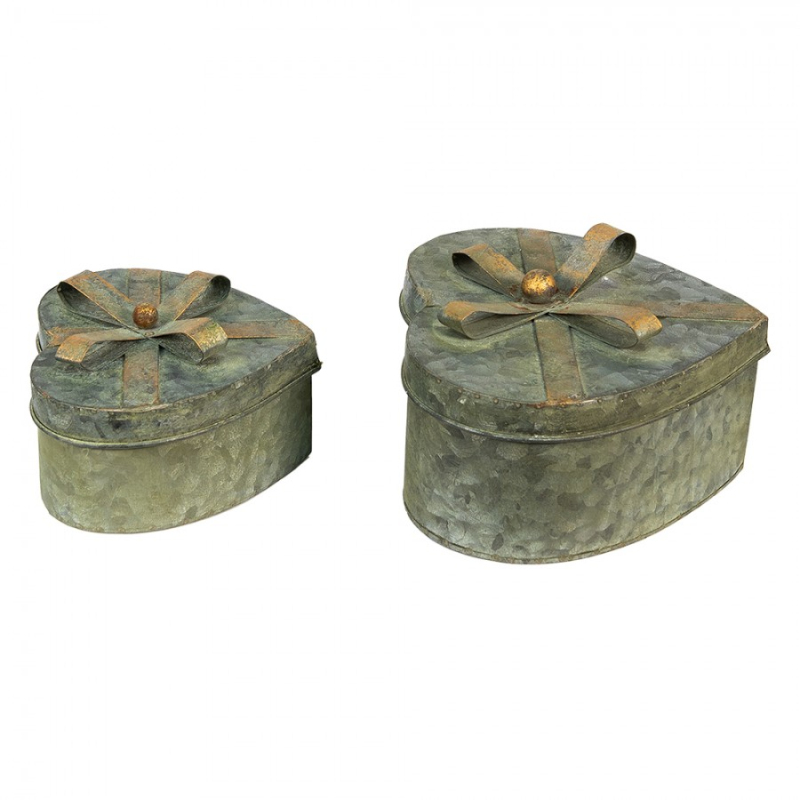 Sada 3 červených úložných boxů ve tvaru srdce se zlatým zdobením – 21x20x9/18x17x7/15x14x6 cm