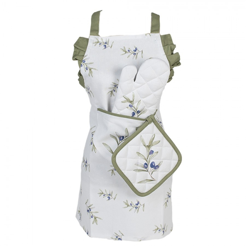 Bavlněná dětská zástěra s motivem olivové větvičky Olive Fields – 48x56 cm