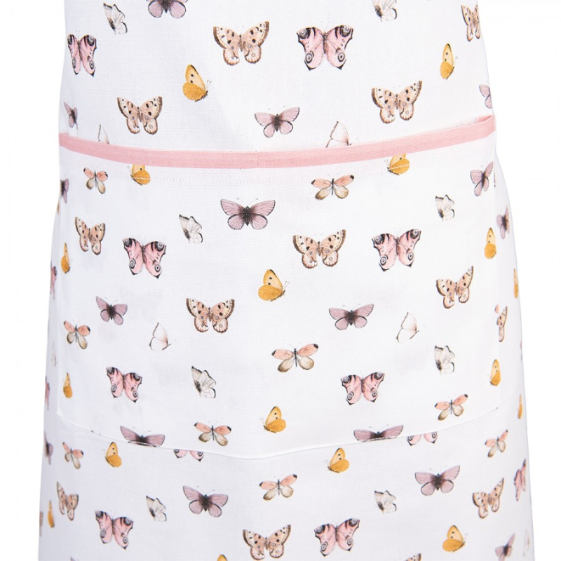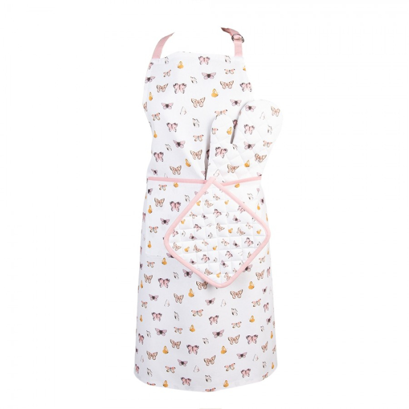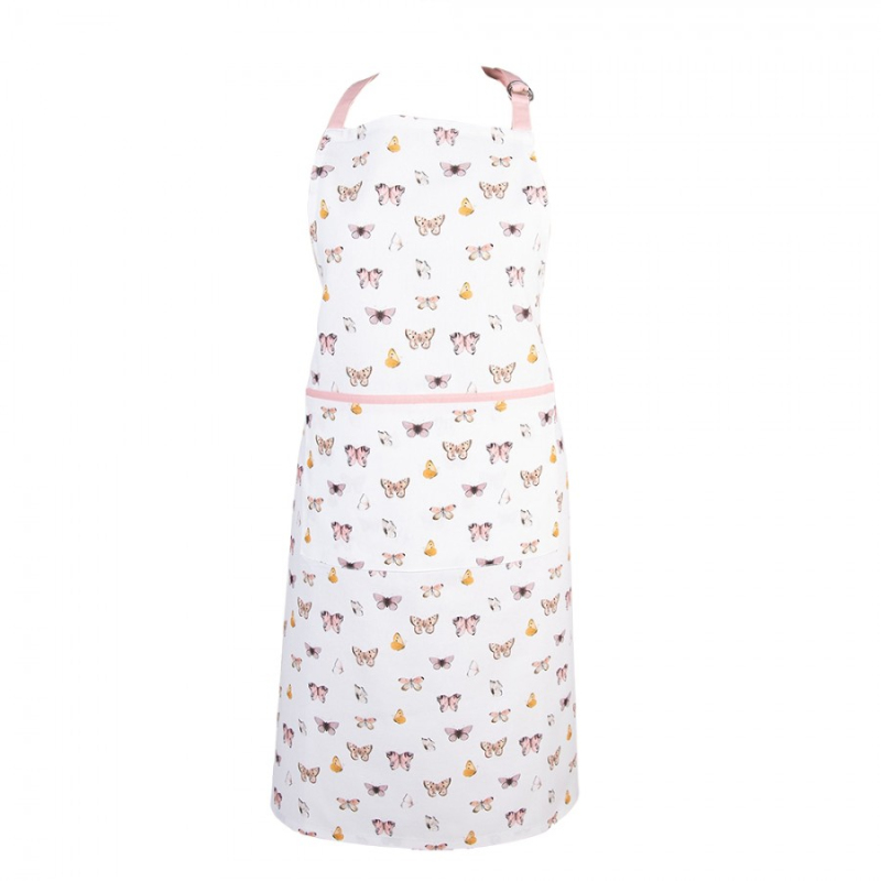 Klíčové vlastnosti zástěry Clayre & Eef: &býk; Vyrobeno ze 100% bavlny &býk; Udržuje vaše oblečení čisté při vaření &býk; Jedna standardní velikost, ale nastavitelná &býk; Praktické kapsy v tašce &býk; Praktické a krásné zároveň &býk; Vhodné do pračky &býk; Lze kombinovat s jinými textiliemi z této řady" Když myslíme na léto, myslíme na barevné motýly. Tato roztomilá a velmi rozsáhlá kolekce obsahuje vzor s řadou různých a veselých motýlů. Růžová kontrastní barva dotváří celý obraz. Série, která zahrnuje předměty, jako jsou dekorační podušky a podušky na židle, ubrusy, běhouny, prostírání a ubrousky. Do kuchyně jsou k dispozici prvky jako kuchyňské utěrky a košíky na chleba. Pěkné na této sérii je, že kuchyňská zástěra, držák na hrnce a chňapka jsou k dispozici pro dospělé i děti. Díky odpovídajícímu nádobí je stolování s rodinou a přáteli mimořádně útulné. Štěstí je jako motýl! Další klíčová slova: bbq zástěra, zástěra na vaření, kuchařská zástěra, kuchyňská zástěra, zástěra