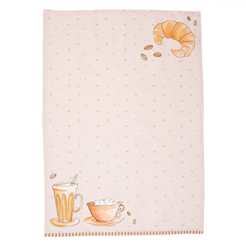 Vlastnosti kuchyňské utěrky Clayre & Eef: &býk; Vyrobeno ze 100% bavlny &býk; Vybaveno praktickým popruhem na zavěšení &býk; Lze prát v pračce &býk; Praktické a krásné zároveň &býk; Rozměr 50*70 cm &býk; Lze kombinovat s dalšími textiliemi z této řady &býk; Jedinečný design navržený v Nizozemsku společností Clayre & Eef &býk; Pro nejlepší výsledek přidejte do praní špetku octa." Tato textilní série je perfektním doplňkem pro dokonalé nedělní ráno. Užijte si přípravu a konzumaci své oblíbené snídaně s lahodným šálkem kávy… den nemohl začít lépe. Tato kolekce obsahuje vzory s croissanty, šálky kávy a kávových zrn na klidném béžovém pozadí. Současný diamantový vzor doplňuje tuto sérii. Položte na stůl běhoun s odpovídajícím košíkem na chléb nebo na něm pečte s odpovídající kuchyňskou zástěrou, chňapkami a chňapkami. S touto kolekcí si můžete vychutnat svou oblíbenou snídani každý den. Další klíčová slova: kuchyňská utěrka, utěrka, utěrka na sušení, utěrka na nádobí, utěrka, utěrka, utěrka, kuchyňská utěrka, utěrka