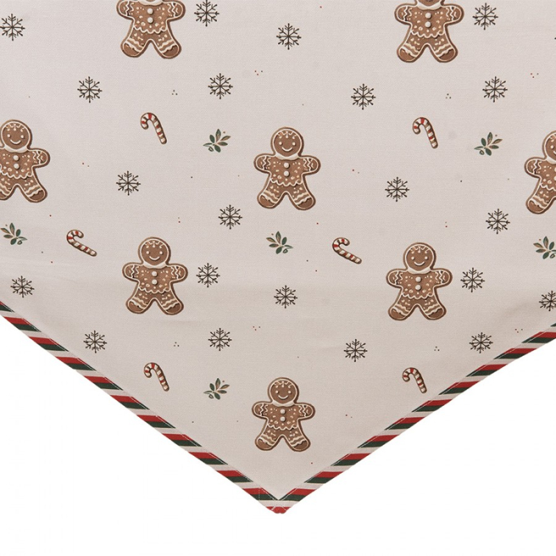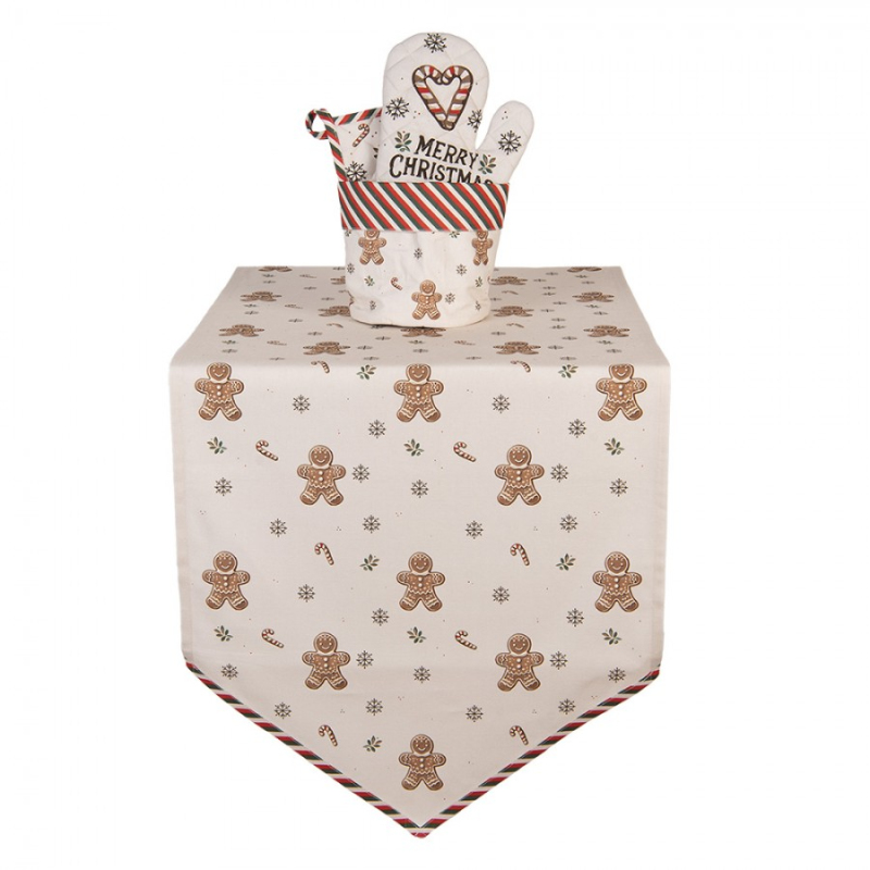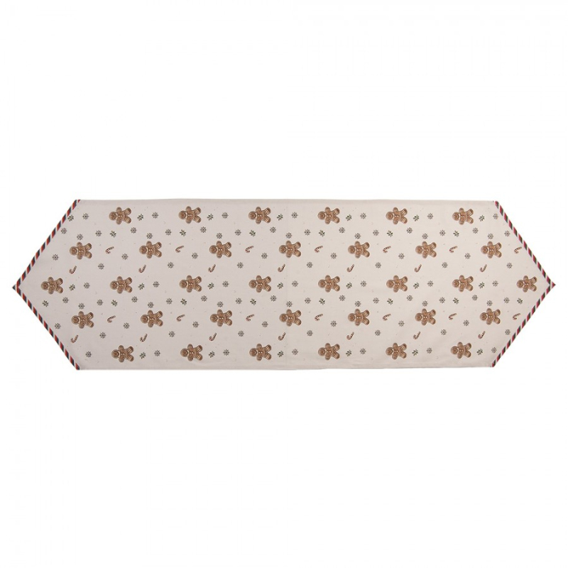 Červeno-bílý vánoční ubrus / běhoun na stůl s motivem pryšce a střapcem – 33x180 cm
