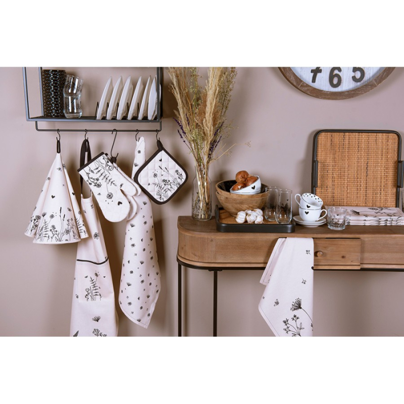 Vlastnosti Clayre & Eef ubrusy: &býk; Vyrobeno ze silné bavlny &býk; Chrání váš stůl &býk; Vhodné do pračky &býk; Pro nejlepší výsledek přidejte při mytí špetku octa &býk; Romantický pohled na váš stůl &býk; Dostupné v různých velikostech Krásná textilní série, která se bude cítit jako doma v každém moderním interiéru. Obejměte přírodu s jejími květinami a včelami. Série, která se bude v mnoha ohledech doplňovat. Vzpomeňte si na kuchyňské textilie, jako jsou kuchyňské utěrky, kuchyňské zástěry, chňapky a chňapky. Tato série ale poskytne i spoustu atmosféry u stolu. Ubrusy, košíky na chleba, prostírání a ubrousky poskytují krásně prostřený stůl a s přídavným nádobím je celá tato série absolutní nutností. Užijte si flóru & fauna a krásné chvíle u stolu a kolem něj.
