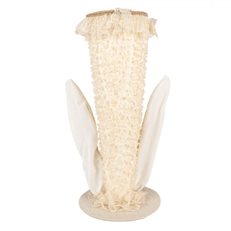 Béžový klobouk s králičíma ušima přitáhne pozornost každého milovníka designových detailů. Výrazné provedení a jemné linie tvoří harmonický celek. Rozměr textilní dekorace z ní dělá středobod každé dekorace. Skvělý tip na dárek nebo oživení interiéru.