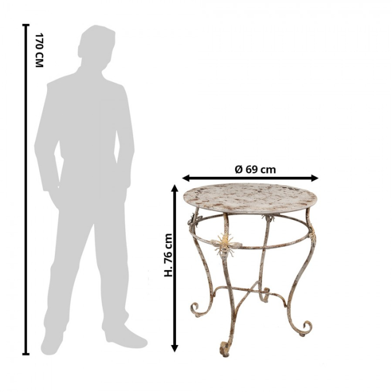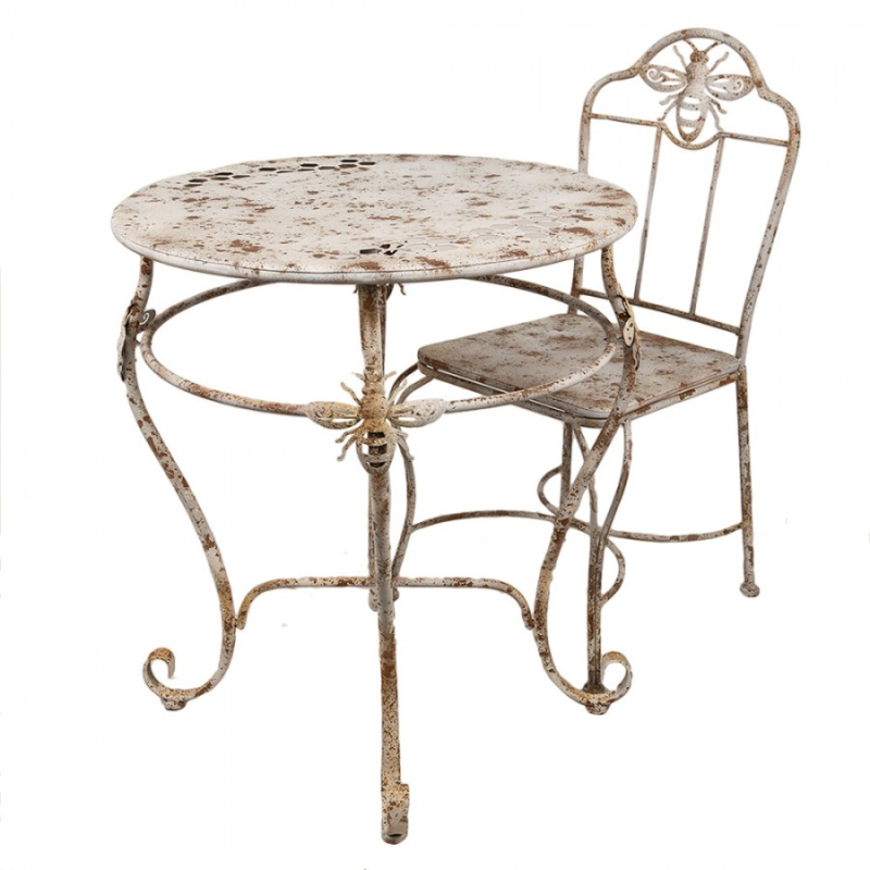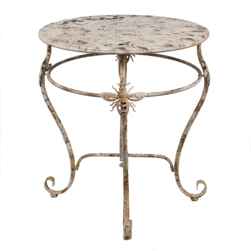 Bílo-hnědý kovový zahradní stolek se včelou Bee Garden – 112x50x86 cm