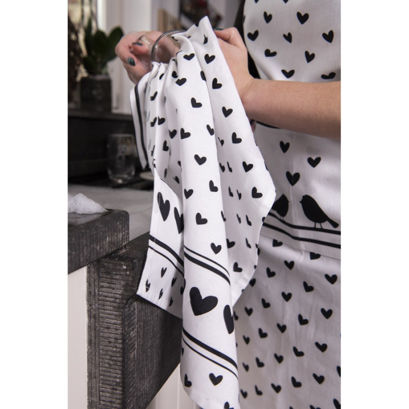 Klíčové vlastnosti Clayre & Eef zástěra: &býk; Vyrobeno ze 100% bavlny &býk; Udržuje vaše oblečení čisté při vaření &býk; Jedna standardní velikost, ale nastavitelná &býk; Praktické kapsy v tašce &býk; Praktické a krásné zároveň &býk; Vhodné do pračky &býk; Lze kombinovat s dalšími textiliemi z této řady Moderní, ale milující seriál. Základem této série je zářivá bílá barva, díky níž si černé potisky přijdou na své. Vůdčí roli v tom mají ´láskaři´ a samozřejmě by neměla chybět potřebná srdíčka. Velmi rozsáhlá série, která je nejen pastvou pro oči kvůli prvkům v textilu, ale také díky velmi rozsáhlému servisu. Myslete na roztomilé misky, hrnky, talíře, sklenice a karafy. Abyste celku dodali slavnostní nádech, můžete kompletně v tomto stylu i připít skleničkami na šampaňské. Na zdraví!