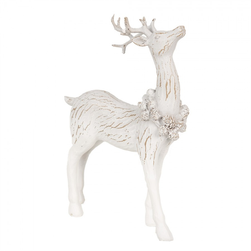 Bílá vánoční dekorace jelen s věncem šišek kolem krku přitáhne pozornost každého milovníka designových detailů. Tato figurka je perfektní součástí vaší vánoční výzdoby. Výrazné provedení a jemné linie tvoří harmonický celek. Rozměr 19 cm z ní dělá středobod každé dekorace. Skvělý tip na dárek nebo oživení interiéru.