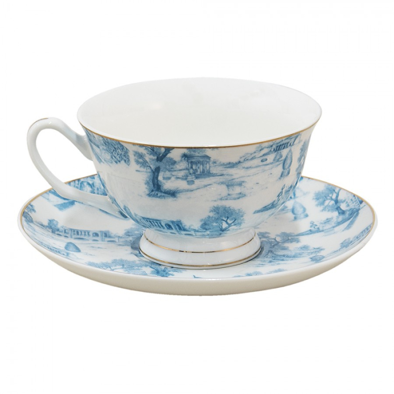Bílo-modrý porcelánový šálek s podšálkem ok – 10x6 / 15x2 cm od Clayre & Eef.