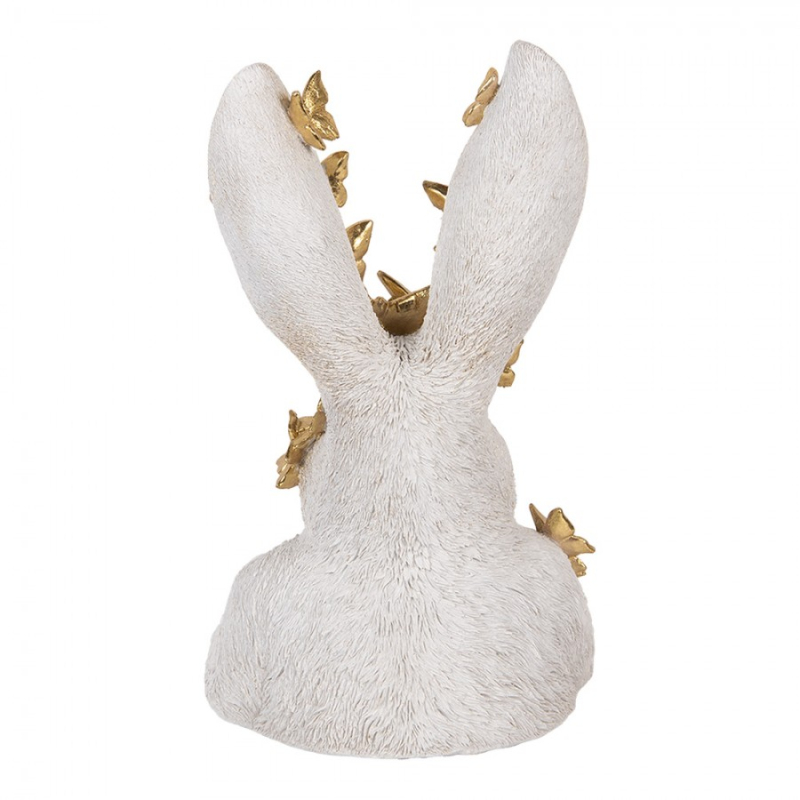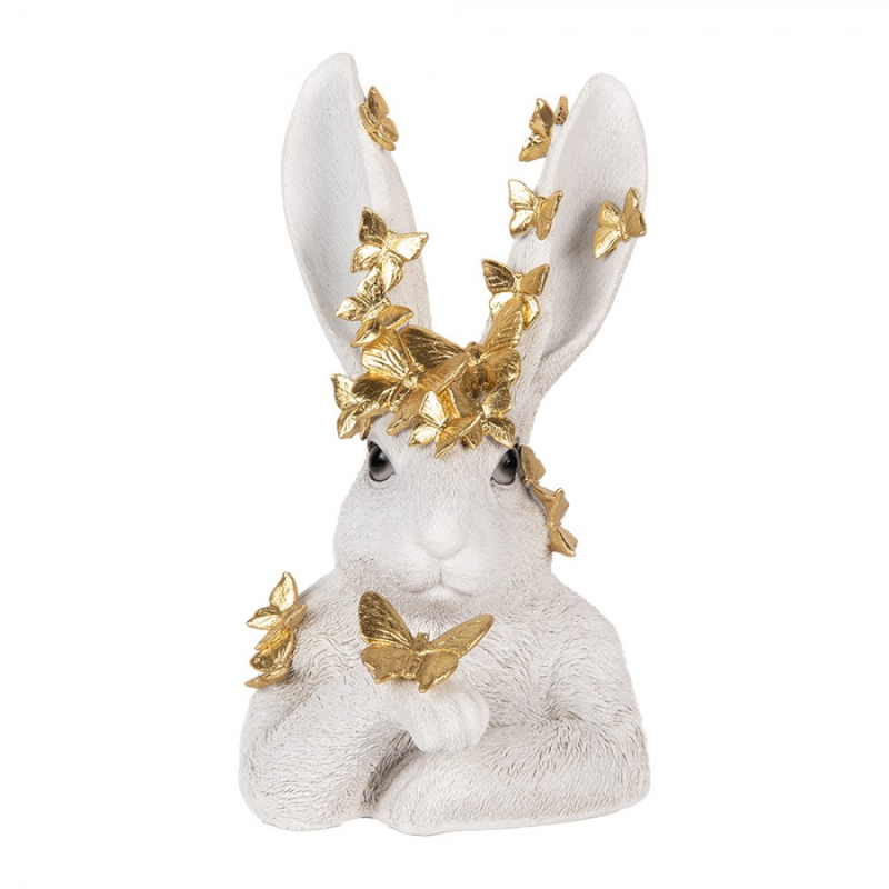 Bílo-zlatá soška králík mezi motýlky přitáhne pozornost každého milovníka designových detailů. Výrazné provedení a jemné linie tvoří harmonický celek. Rozměr 21x20x34 cm z ní dělá středobod každé dekorace. Skvělý tip na dárek nebo oživení interiéru.