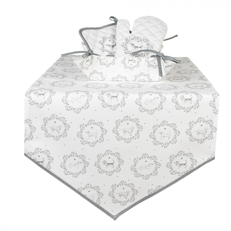 Důležité vlastnosti Clayre & Eef stolní běhoun &býk; Vyrobeno z bavlny &býk; Atmosférická ochrana vašeho stolu &býk; K dispozici ve dvou různých formách &býk; Mycí hrot; pro dosažení nejlepších výsledků přidejte během praní špetku octa &býk; Vhodné do pračky &býk; Lze kombinovat s dalšími textiliemi ze stejné sérieTento běhoun z řady Clayre & Značka Eef je díky jedinečnému motivu opravdovým doplňkem vašeho jídelního stolu. Navozuje hřejivou atmosféru při jídle a je samozřejmě praktické. Běhoun je vyroben ze 100% bavlny a je příjemný na dotek. Běhoun na stůl lze prát, ale malý hrot; pro optimální výsledky přidejte během praní špetku octa. Dodejte svému stolu atmosféru pomocí běhounů od Clayre & Eef! Pozvedněte atmosféru každé kuchyně s touto krásnou, nadčasovou šedou a bílou sérií s psí tématikou. Roztomilé psí motivy dodávají každé kuchyni teplo a charakter, takže jsou nezbytností pro milovníky psů a každého, kdo dokáže ocenit vkusnou výzdobu kuchyně. Zažijte harmonickou směs stylu a funkčnosti; tyto textilní kousky nejen zkrášlí estetiku vaší kuchyně, ale slouží také jako vysoce praktické doplňky. Proměňte svou kuchyni na příjemný prostor, který odráží lásku ke psům prostřednictvím dokonalé kombinace šarmu a nádherných vzorů.