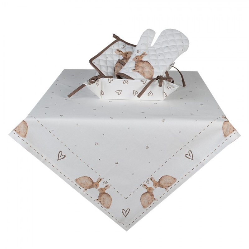 Důležité vlastnosti Clayre & Eef ubrus &býk; Vyrobeno z bavlny &býk; Optimální ochrana vašeho stolu &býk; Dostupné v různých velikostech &býk; Mycí hrot; pro dosažení nejlepších výsledků přidejte během praní špetku octa &býk; Vhodné do pračky &býk; Lze kombinovat s jinými textiliemi ze stejné série Tento ubrus z Clayre & Značka Eef je díky svému jedinečnému vzoru skutečným doplňkem vašeho jídelního stolu. Navozuje hřejivou atmosféru při jídle a je samozřejmě praktické. Ubrus je vyroben ze 100% bavlny a působí příjemným dojmem. Ubrus lze prát, ale malý hrot; pro optimální výsledky přidejte během praní špetku octa. Dodejte svému stolu atmosféru s ubrusy od Clayre & Eef! Když myslíme na Velikonoce, myslíme na velikonočního zajíčka. Tato textilní série obsahuje dva roztomilé zajíčky jako střed. Neutrální série, která skvěle zapadne do každého interiéru. Milý srdíčkový vzor dělá z tohoto textilu roztomilou sérii, která zútulní váš stůl a kuchyni nejen o Velikonocích, ale můžete si ji užívat po celý rok. S věcmi, jako je ubrus, prostírání, ubrousky a košíky na chléb, je láskyplně prostřený jídelní stůl zaručen. Další klíčová slova: ubrus, podložka na stůl, prostírání, nádobí, ubrus, ubrus