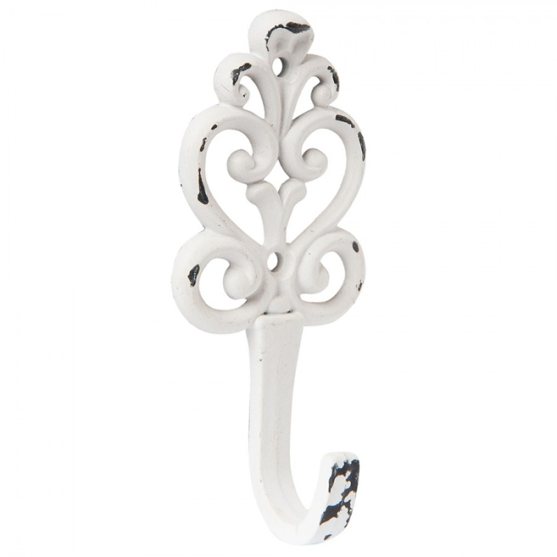Nástěnný háček s kulatou keramickou základnou s bílo-černým motivem lístků – 6x7 cm