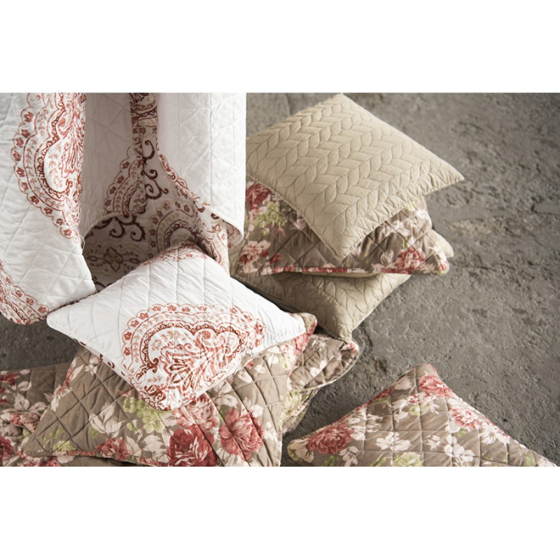 Béžový patchwork povlak na polštář s drobnými květy Selma M – 40x40 cm
