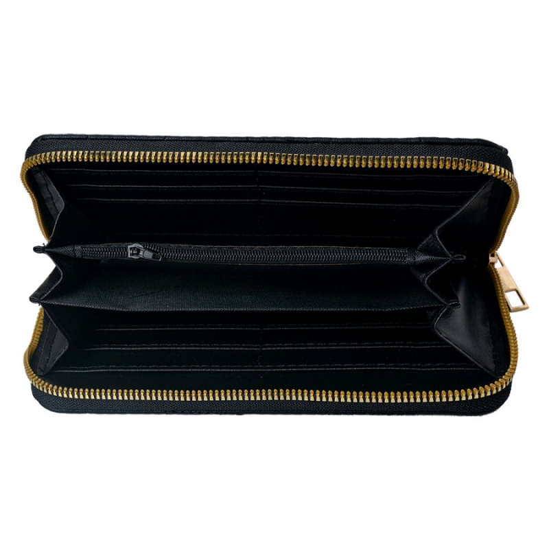 Fialová velká peněženka se čtvercovým prošíváním a černým čtyřlístkem – 19x10 cm