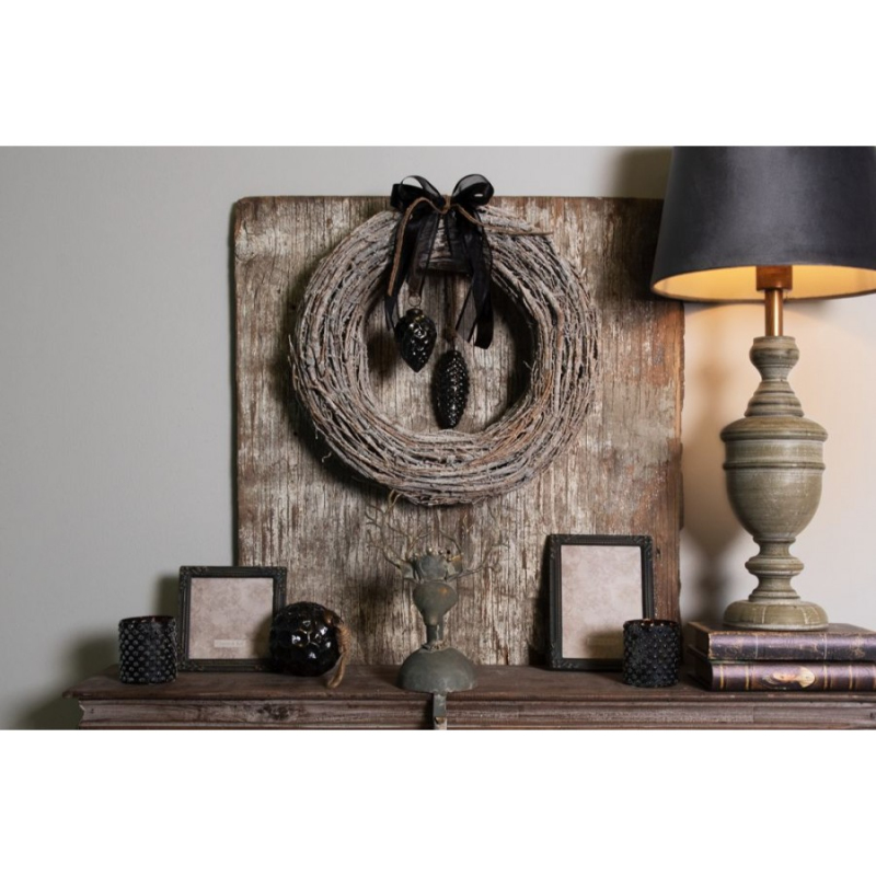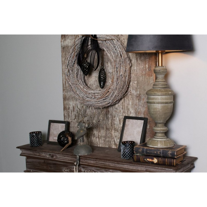 Černá skleněná vánoční cetka koule s proužky a šedým odřením Karlijn – 12x12 cm