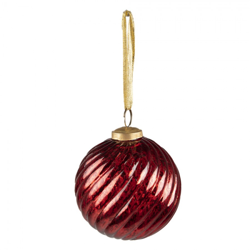 Zlatá skleněná vánoční cetka koule s proužky a odřením Noella M – 12x12 cm
