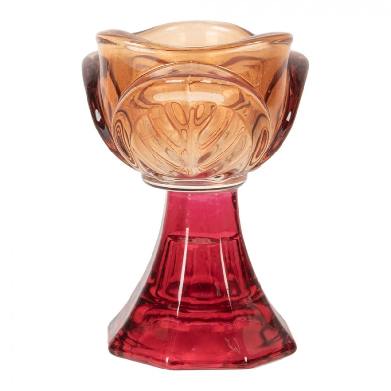 Skleněný šedo zelený svícen Katinka s květinami a zdobeným okrajem L – 12x13 cm
