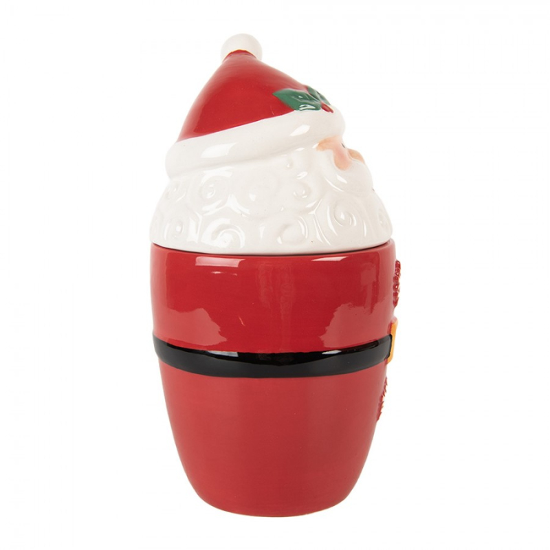 Vánoční keramický hrneček veselý Santa Claus s růžovým ouškem – 16x11x10 cm
