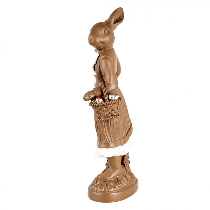 Dekorace čokoládový králíček s bílou mašlí a stříbrným vajíčkem z kolekce Zoete Pasen přitáhne pozornost každého milovníka designových detailů. Výrazné provedení a jemné linie tvoří harmonický celek. Rozměr 39 cm z ní dělá středobod každé dekorace. Skvělý tip na dárek nebo oživení interiéru.