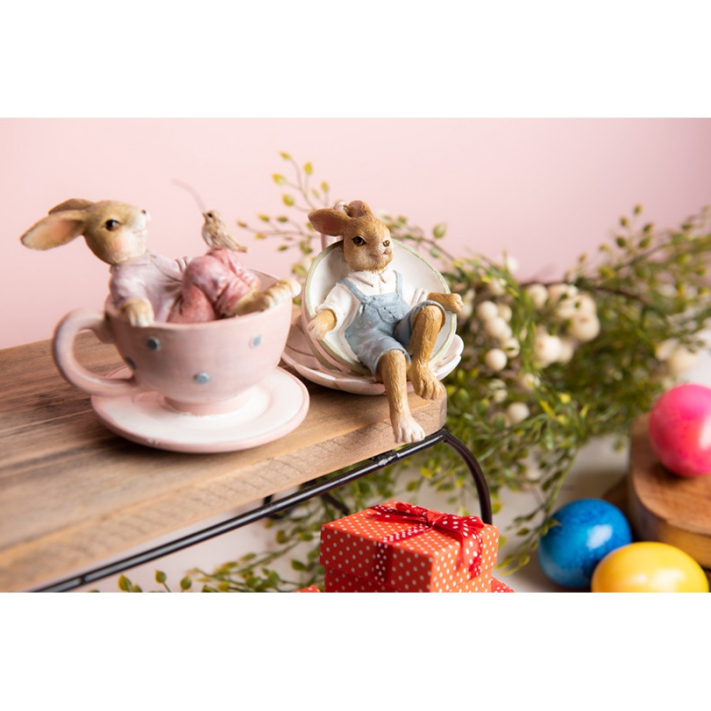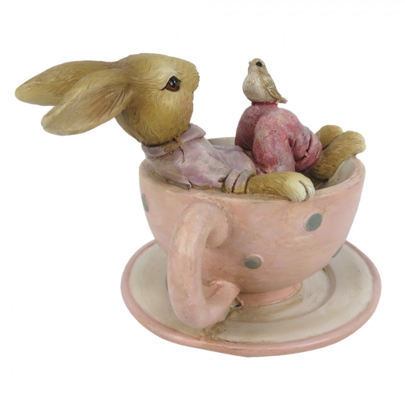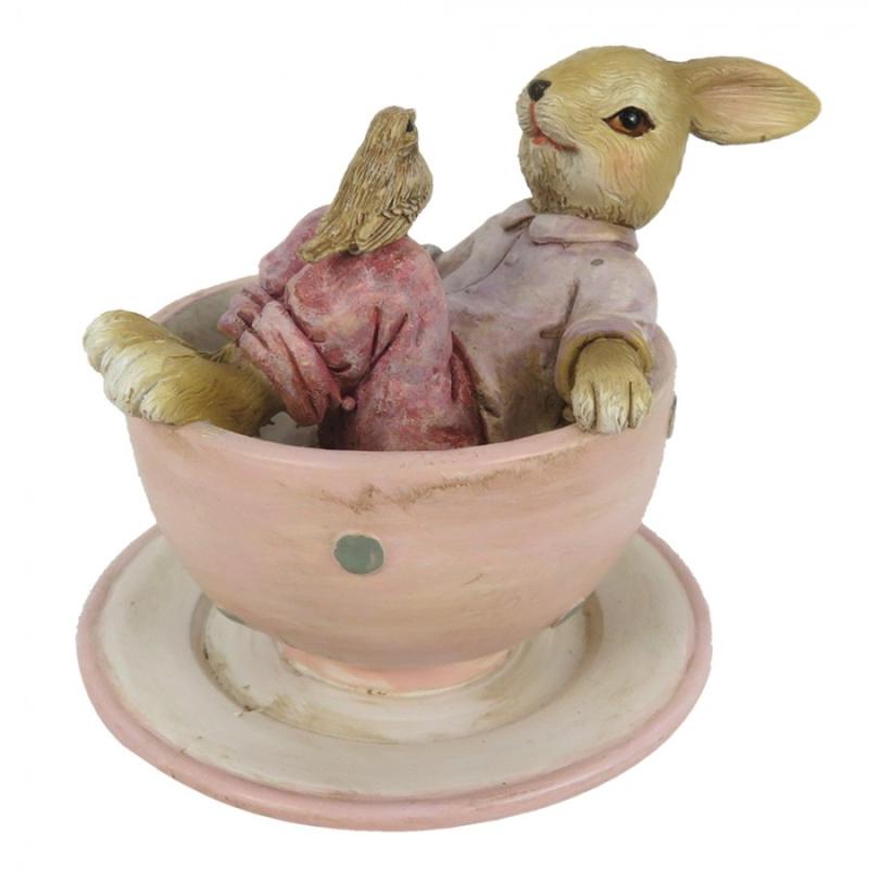 Dekorační figurka zajíc baron v hnědém oděvu se zlatým táckem – 18x17x31 cm