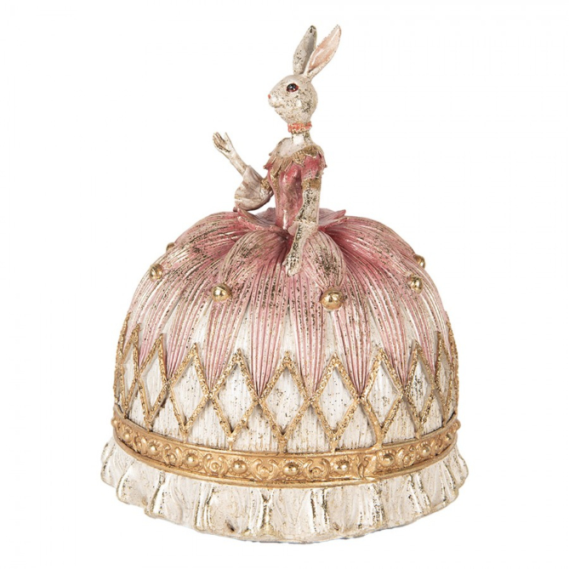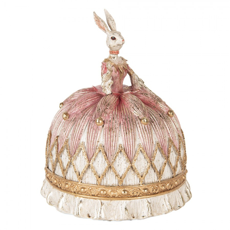 Dekorace ve vintage stylu bílá zaječice v růžových slavnostních šatech přitáhne pozornost každého milovníka designových detailů. Výrazné provedení a jemné linie tvoří harmonický celek. Rozměr 23x28 cm z ní dělá středobod každé dekorace. Skvělý tip na dárek nebo oživení interiéru.