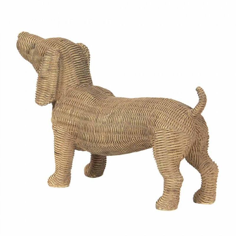 Dekorační béžová socha pes jezevčík imitace proutí – 39x14x24 cm od Clayre & Eef.