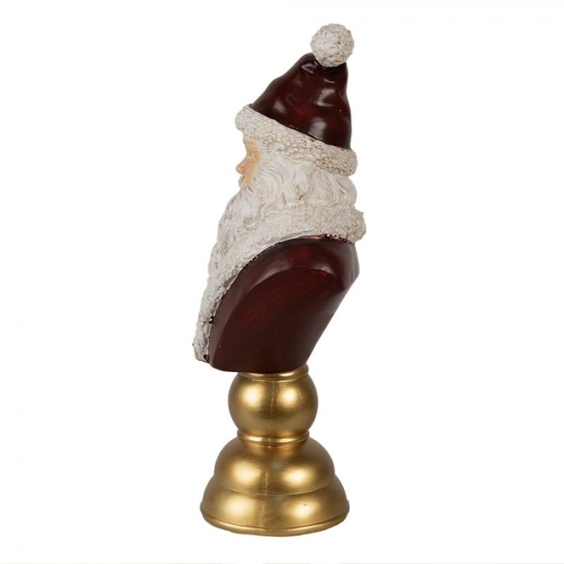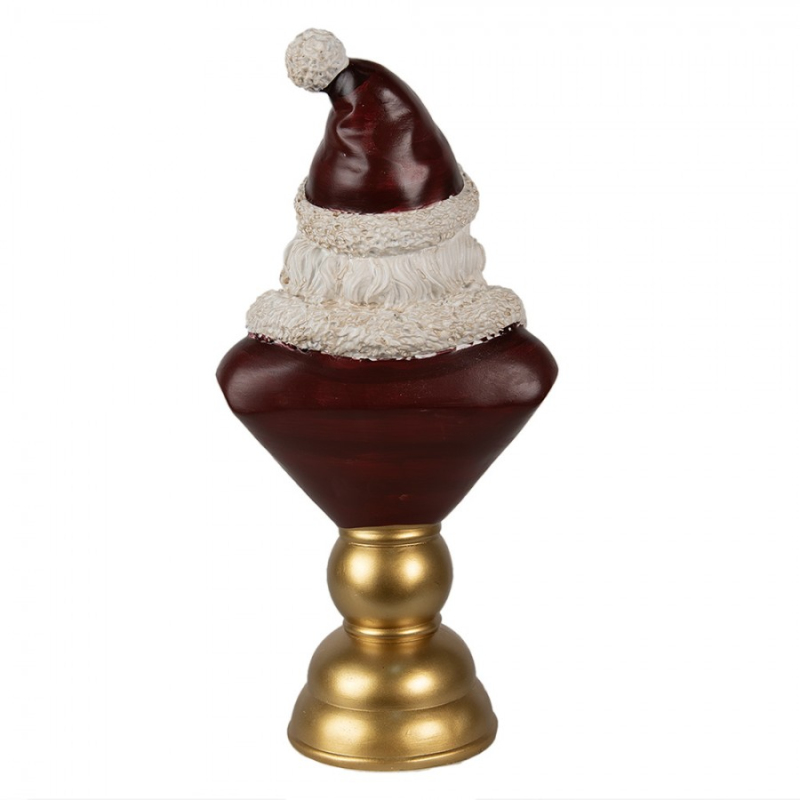 Červená vánoční dekorace Santa Claus na hnědém podstavci držící dárek a vánoční bobule – 23 cm
