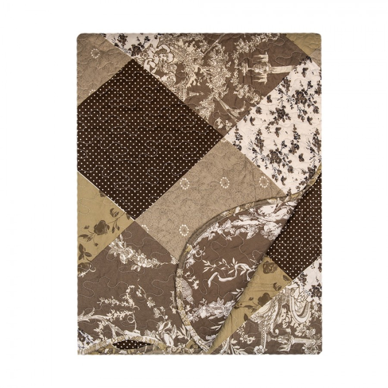 Hnědý prošívaný přehoz s květy na dvoulůžko s 2 povlaky na polštář Anita – 220x240 cm
