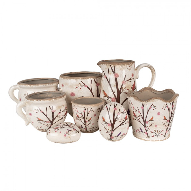 Béžový keramický obal na květináč s květinami různých druhů Lovely Flowers – 14x13 cm