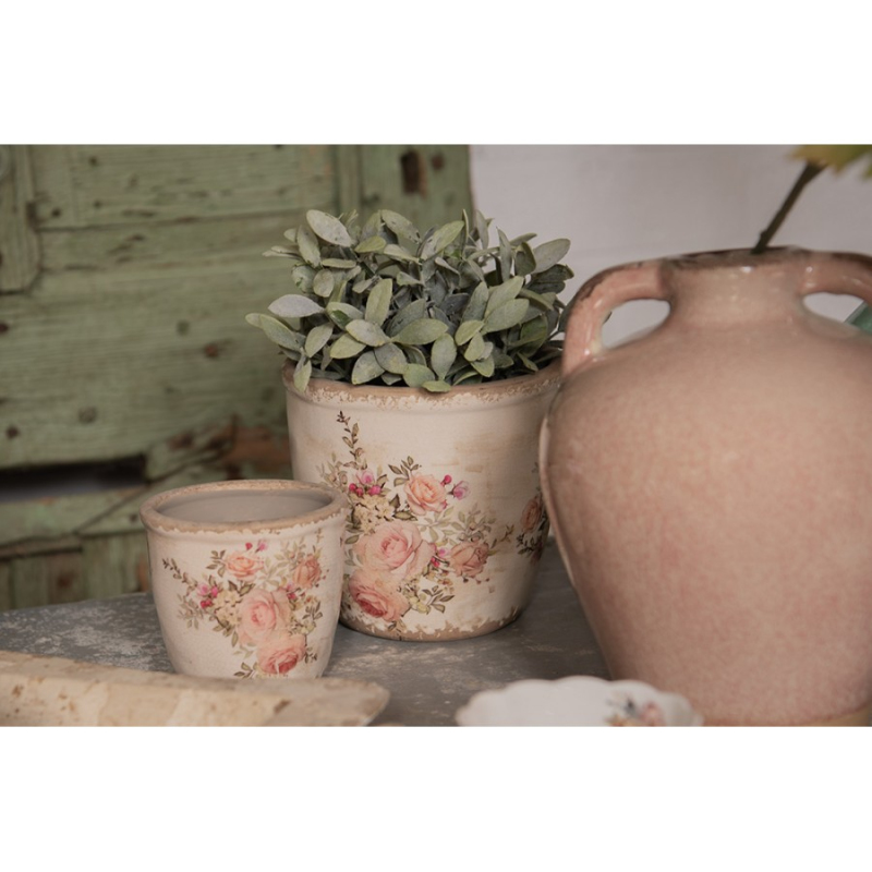 Keramický obal na květináč s růžemi Rosien XL – 16x15 cm od Clayre & Eef.