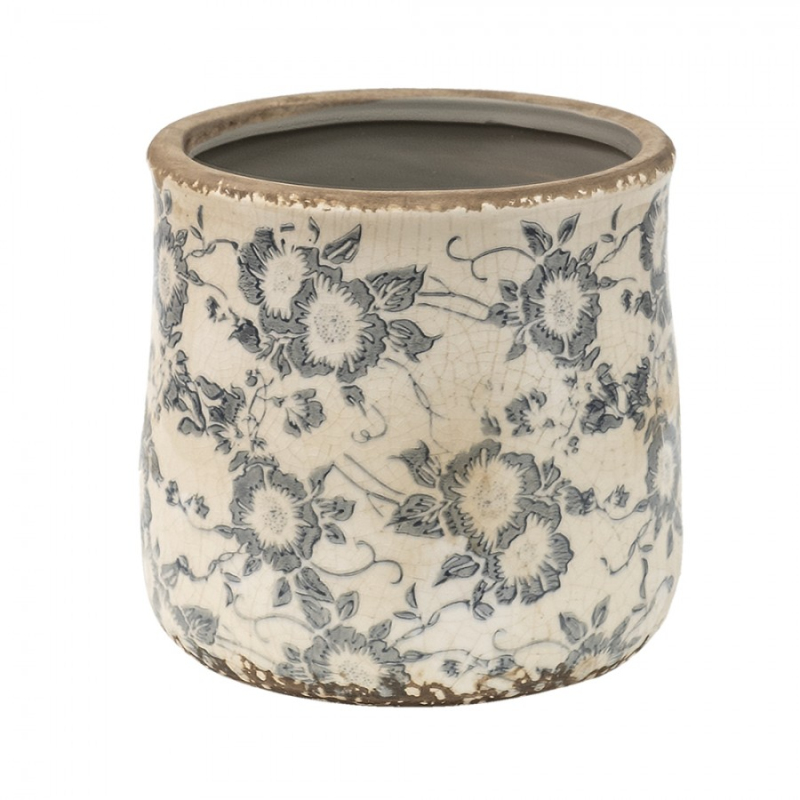 Keramický obal na květináč se šedými květy Rente M – 14x14 cm od Clayre & Eef.