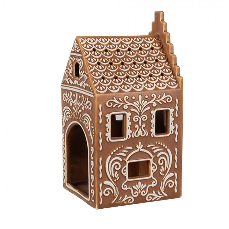 Klíčové vlastnosti Clayre & Eef Gingerbread House:• Nádherný doplněk pro sváteční atmosféru v domácnosti během Vánoc. &býk; Tento produkt může vyvolat pocit hladu těsně před štědrovečerní večeří. &býk; Oživuje kouzlo Vánoc. A Clayre & Co. Eef perníková chaloupka je okouzlující dekorativní předmět, který oživuje kouzlo Vánoc. Tento okouzlující domeček se svým lahodným designem je vyroben z polyresinu, odolné syntetické pryskyřice, a je pečlivě dokončen tak, aby replikoval texturu a vzhled skutečného perníku a polevy. Perníková chaloupka obsahuje barevné detaily, jako jsou pocukrovaná okna, cukrovinky a komín pokrytý sněhem. Zdá se, že střecha je posypaná moučkovým cukrem a stěny jsou zdobeny bonbóny a polevou, což jí dodává slavnostní a hravý vzhled. Tento dům vyzařuje teplo a útulnost, takže je dokonalým doplňkem vaší vánoční výzdoby. Umístěte tento předmět na plášť, parapet nebo jednoduše jako středobod slavnostního stolu a doplňte tak kouzelnou vánoční atmosféru.
