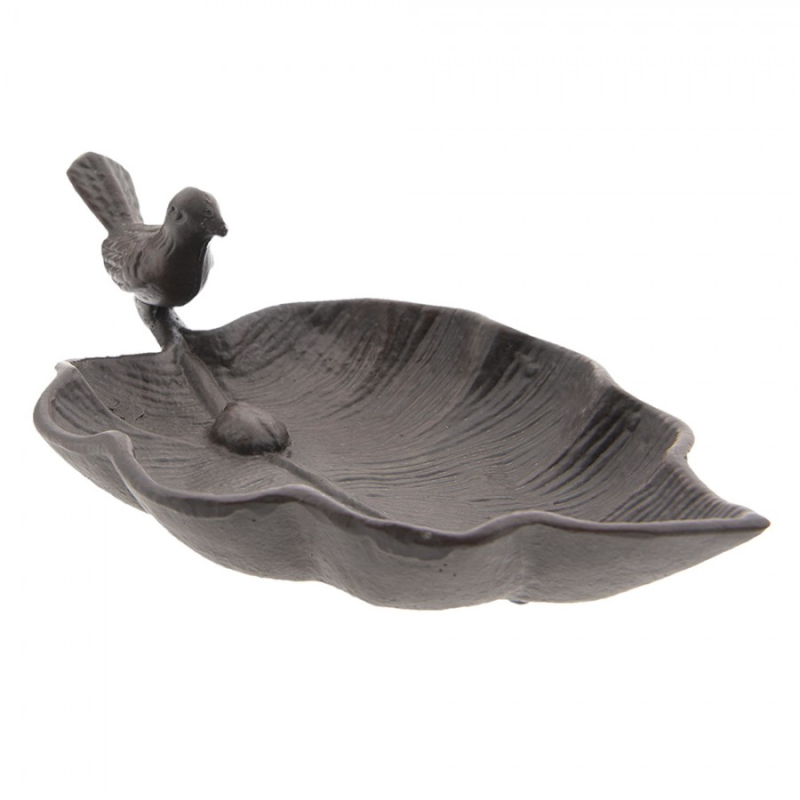 Béžové cementové pítko pro ptáčky ve tvaru leknínu s žabičkami – 22x6 cm