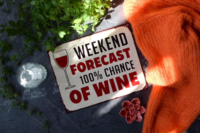 Nástěnná kovová cedule Weekend & Wine – 20x1x25 cm od Clayre & Eef.