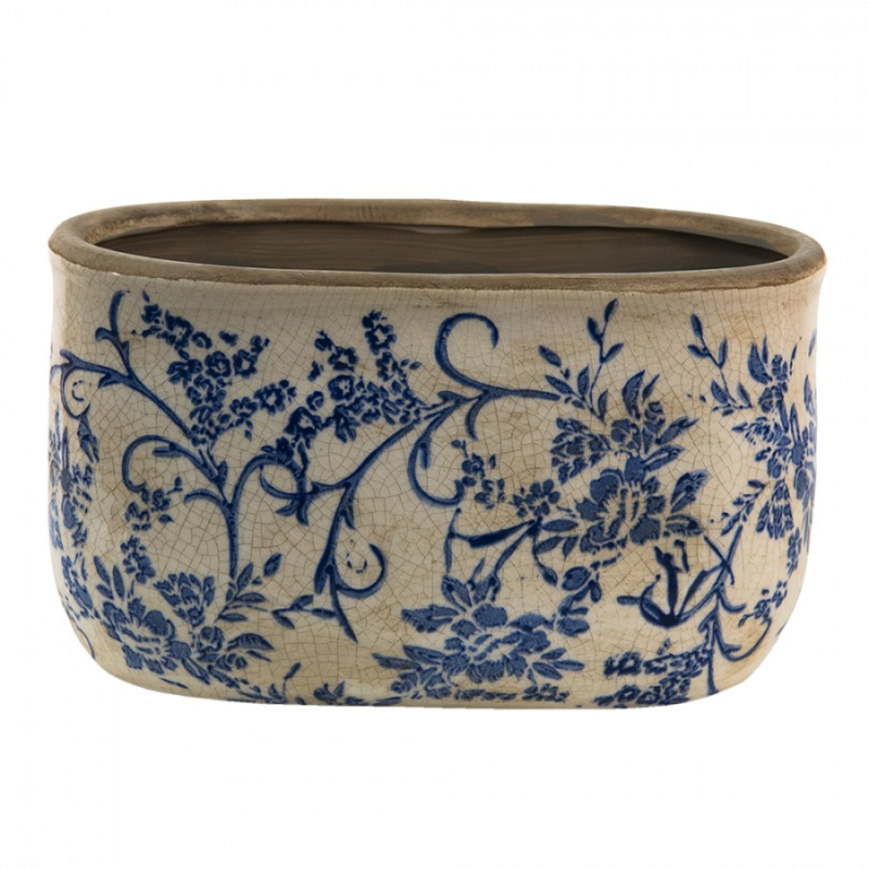 Oválný keramický obal na květináč s modrými květy Nichole L – 22x12x13 cm od Clayre & Eef.