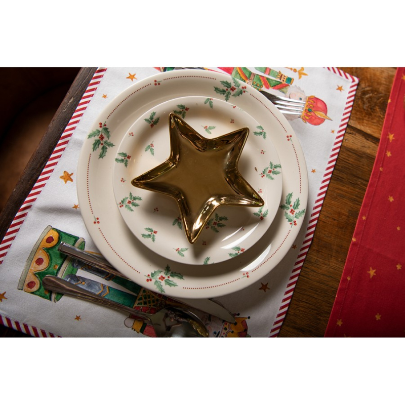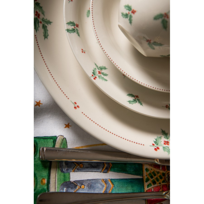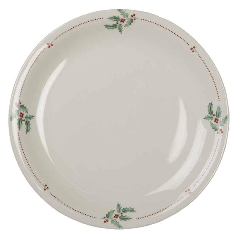 Porcelánový jídelní talíř s cesmínou a puntíky Holly Christmas – 28 cm od Clayre & Eef.