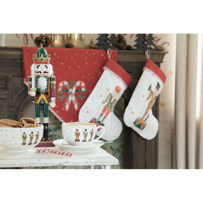 Vánoční keramický hrnek s miskou ve tvaru jelena béžovo-červený Moer – 12x12x18 cm