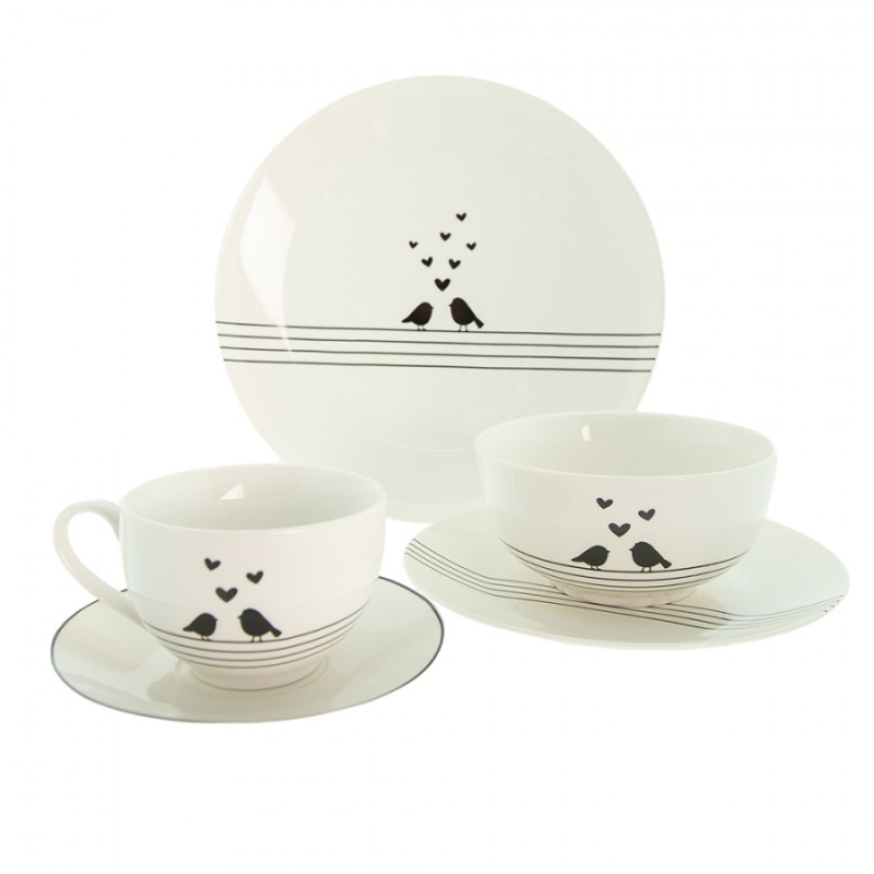 Porcelánový šálek s podšálkem s ptáčky Love Birds – 12x9x7 cm od Clayre & Eef.