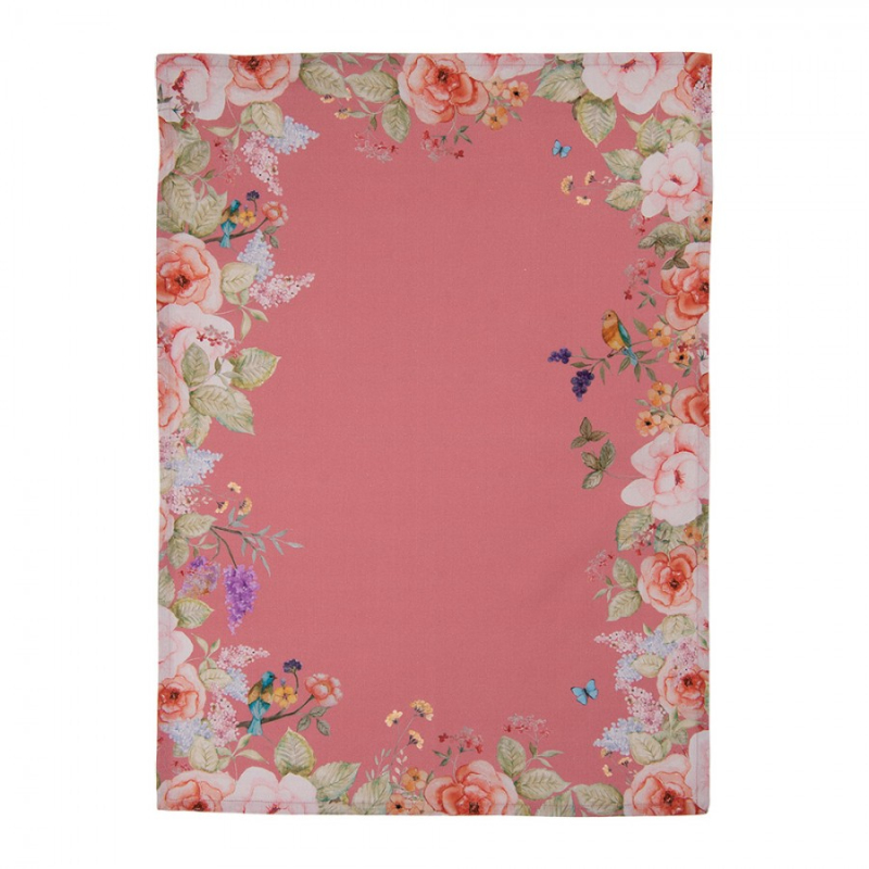Růžová kulatá bavlněná utěrka pruhovaná se vzorem růžiček Sweet Roses – 80 cm