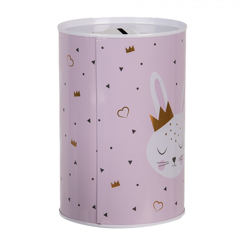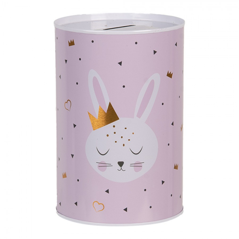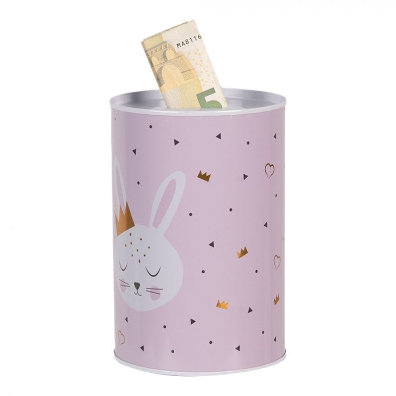 Červená plechová kasička s motivem domečků a loděk na pobřeží – 10x15 cm