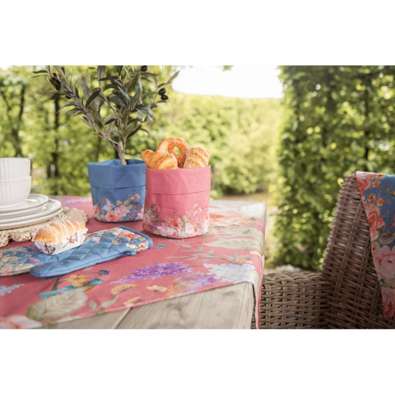 Modrý bavlněný košík na pečivo s květinovým motivem Floral Fiesta – 15x16 cm