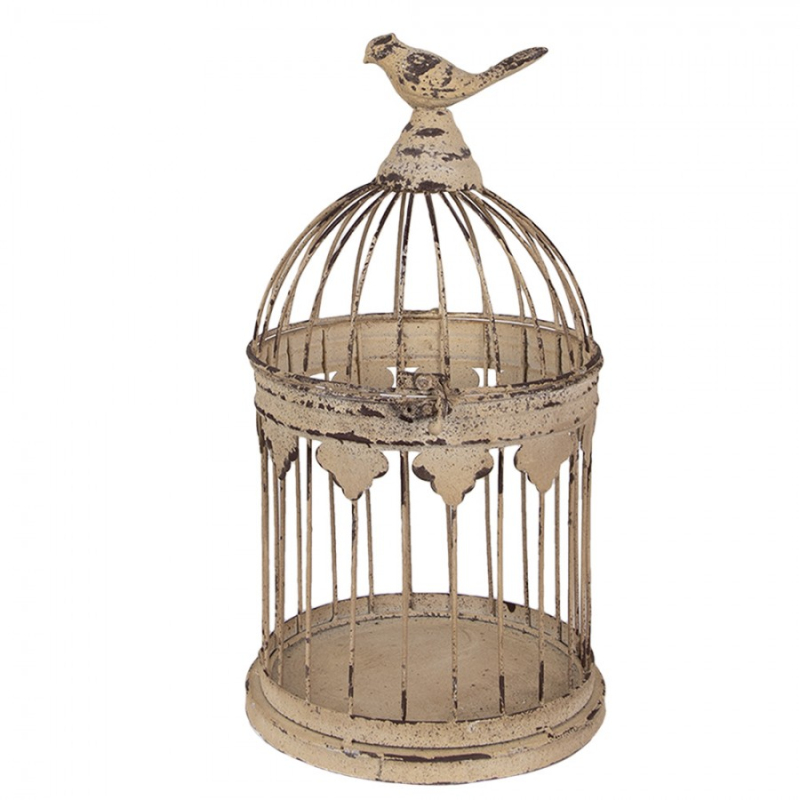 3 ks dekorativní bílá klec na ptáčky s patinou – 36x81 / 31x72 / 26x44 cm