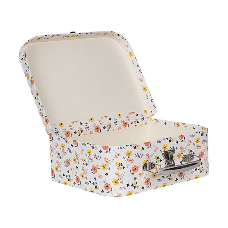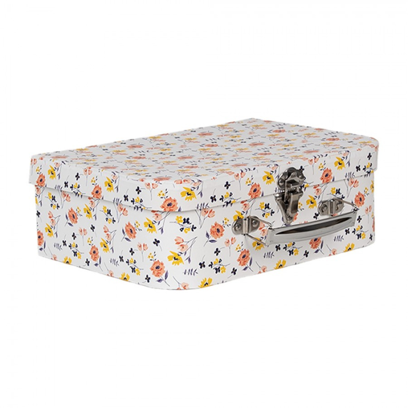 Bílý úložný box ve tvaru knihy s romantickým květinovým potahem – 17x14x5 cm