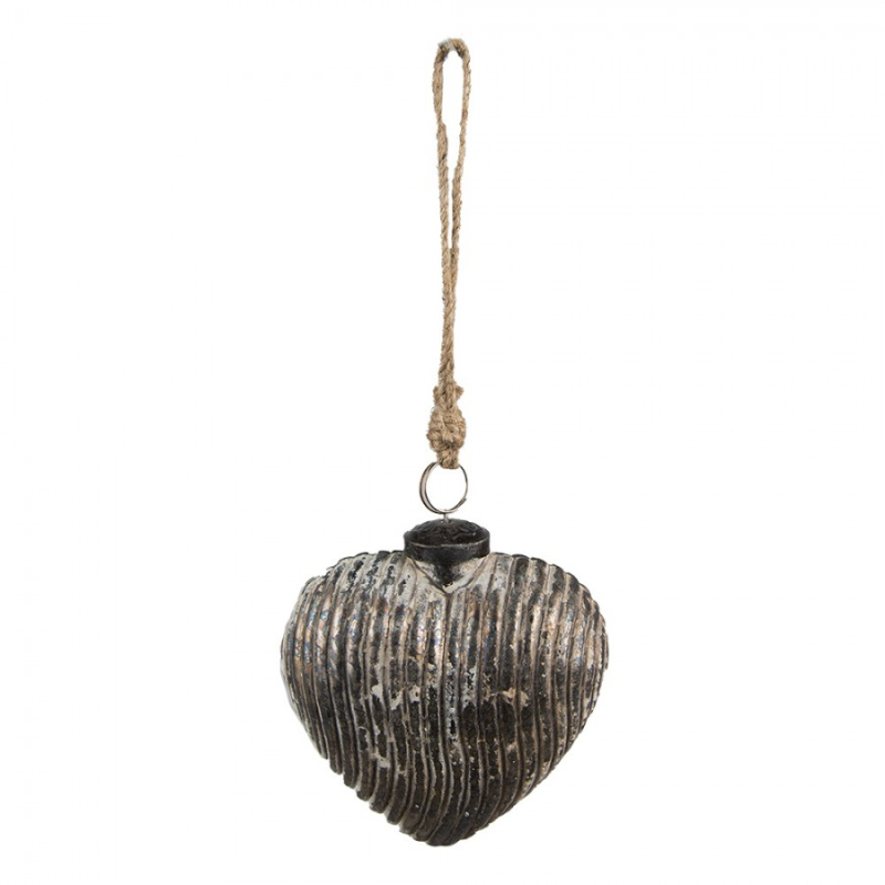 Šedá antik vánoční skleněná ozdoba srdce – 7x4x8 cm od Clayre & Eef.