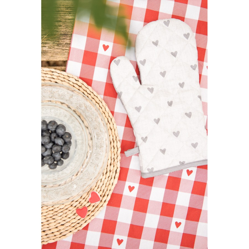 Důležité vlastnosti kuchyňské rukavice Clayre & Eef Vyrobeno z bavlny S praktickým poutkem pro zavěšení Vhodné pro vyndání teplého nádobí z trouby nebo mikrovlnné trouby; odolné vůči teplu Vhodné do pračky Dvě standardní velikosti 16x30 cm a 18x30 cm Lze kombinovat s dalšími textiliemi ze stejné série. Tato zábavná kuchyňská rukavice od Clayre & Eef je díky svému jedinečnému motivu skutečným doplňkem vaší kuchyně. Vytváří v kuchyni teplou atmosféru a je samozřejmě praktická. Chňapka je vyrobena ze 100% bavlny a má také praktické poutko pro zavěšení. Má také polyesterovou výplň pro izolaci, díky čemuž je odolná vůči teplu. A samozřejmě lze kuchyňskou rukavice prát v pračce. Dodá vaší kuchyni atmosféru s kuchyňskými rukavicemi od Clayre & Eef. Bavlněné kuchyňské rukavice Eef!Cotton mají teplotní limit přibližně 200–230 stupňů Celsia (400–450 stupňů Fahrenheita). Při manipulaci s horkými předměty, jako jsou plechy, je důležité zohlednit teplotu plechu. Pokud má plech vyšší teplotu než teplotní limit vašich bavlněných kuchyňských rukavic, může teplo proniknout rukavicemi a způsobit popáleniny.
