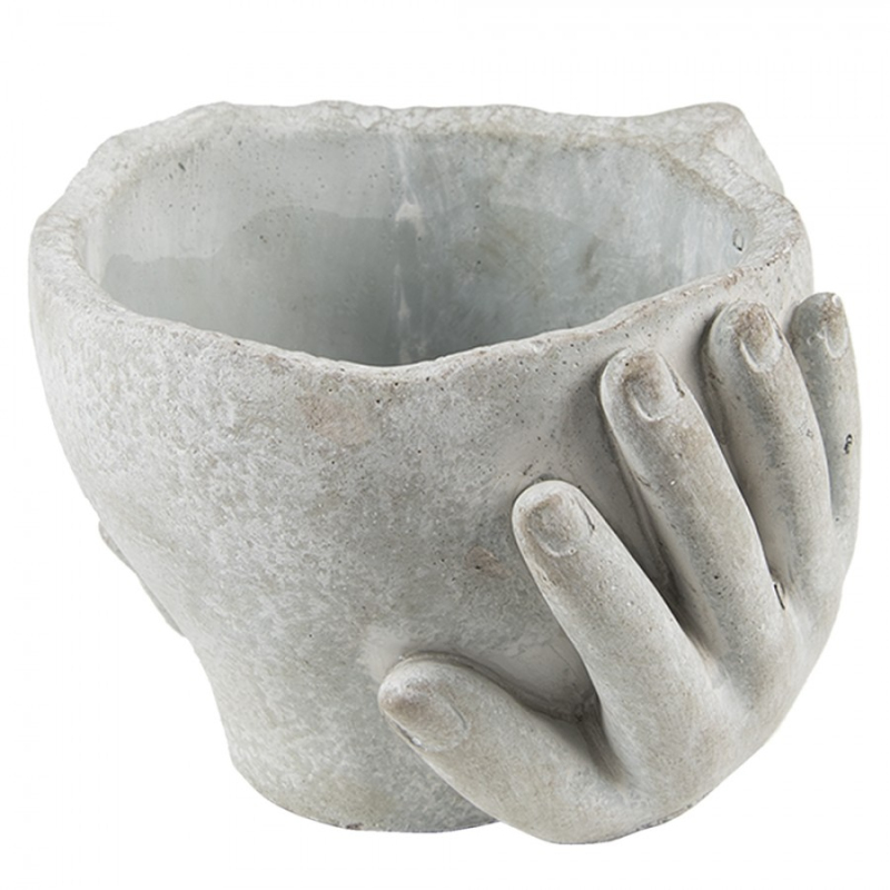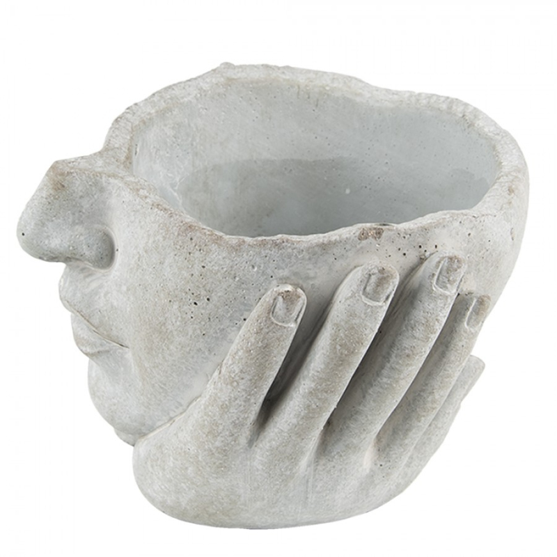 Béžový cementový obal na květináč ve tvaru motýla s motýlkem – 24x10x19 cm