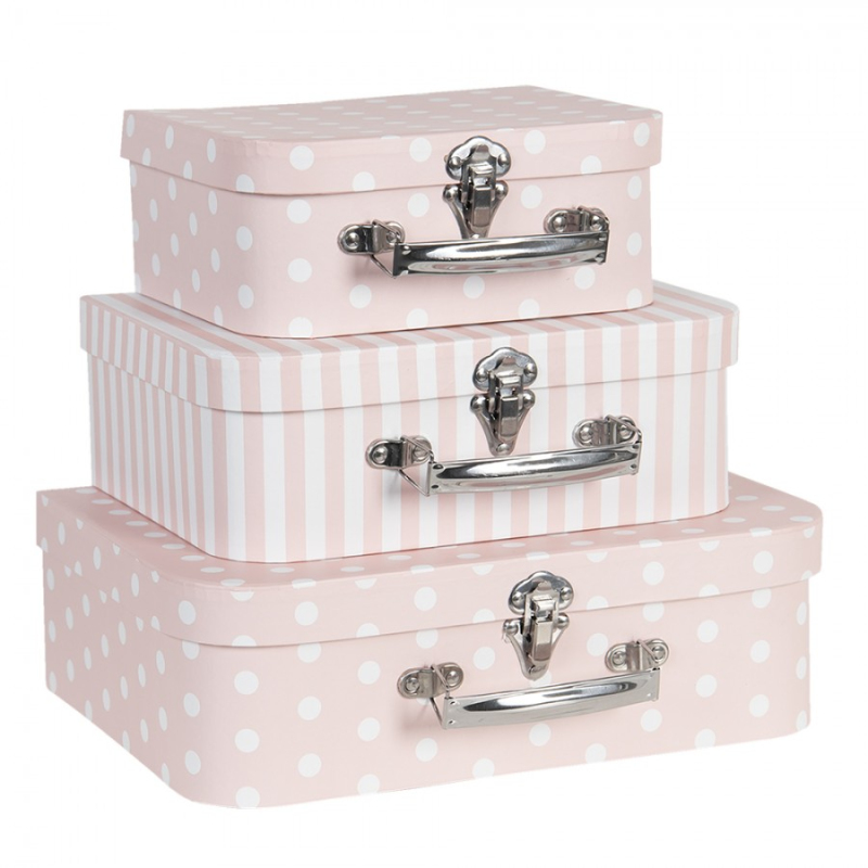 Set 3 dekoračních růžových kufříků s různými vzory od Clayre & Eef.