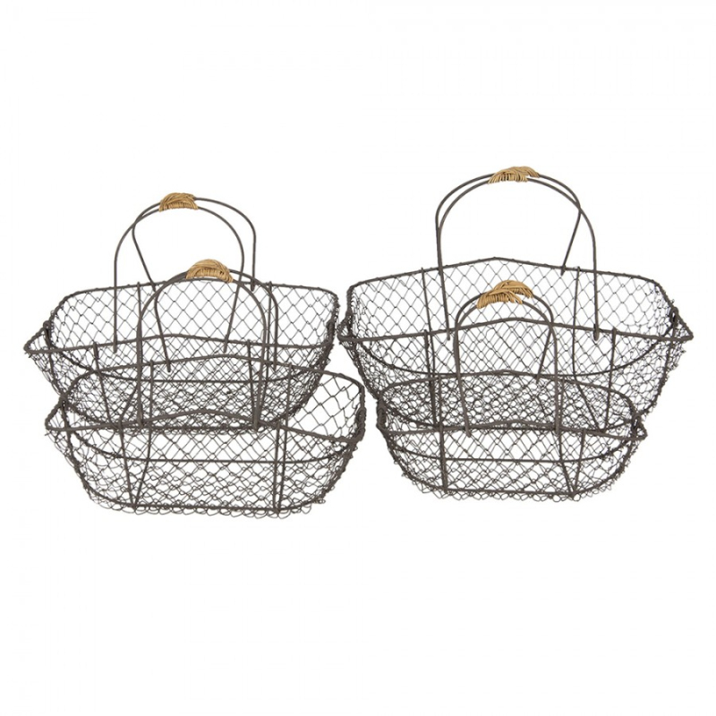 Set dvou kovových bílých kruhových košíků se srdíčky a držákem Katrien – 39/33 cm