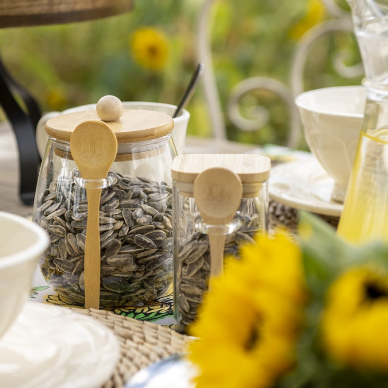 Do této stylové skleněné dózy můžete uložit nejrůznější věci. Myslete na cukr, koření a sušenky. Dóza o objemu 660 ml je dodávána s bambusovým víčkem a lžičkou. Lžíce zvyšuje snadnost použití, protože z dózy můžete vše snadno nabrat. Bambusové prvky v kombinaci se sklem dodávají tomuto výrobku velmi přirozený vzhled. Bambus je přírodní produkt. Proto se mohou u jednotlivých položek vyskytnout malé odchylky v barvě a velikosti.