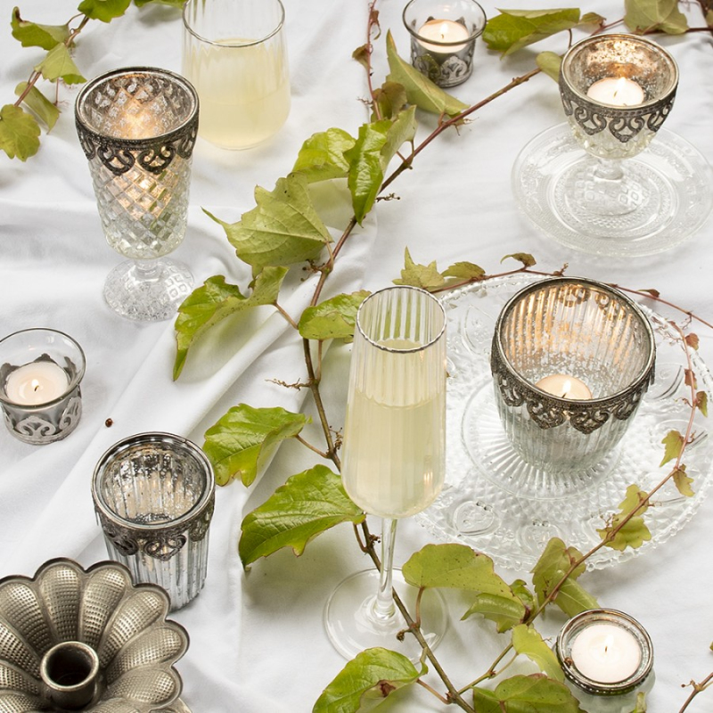 Vytvořte atmosféru pomocí krásných držáků na čajové svíčky. Se světlem svíček dodají držáky na čajové svíčky teplou barvu. Zkombinujte ji s menšími nebo většími držáky na čajové svíčky a vytvořte ještě krásnější vzhled.